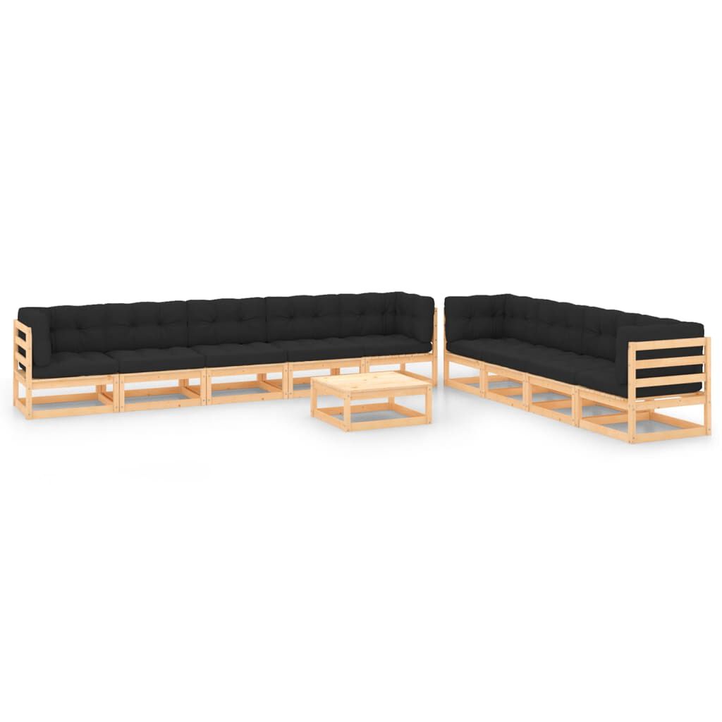 vidaXL 10-delige Loungeset met antracietkleurige kussens grenenhout