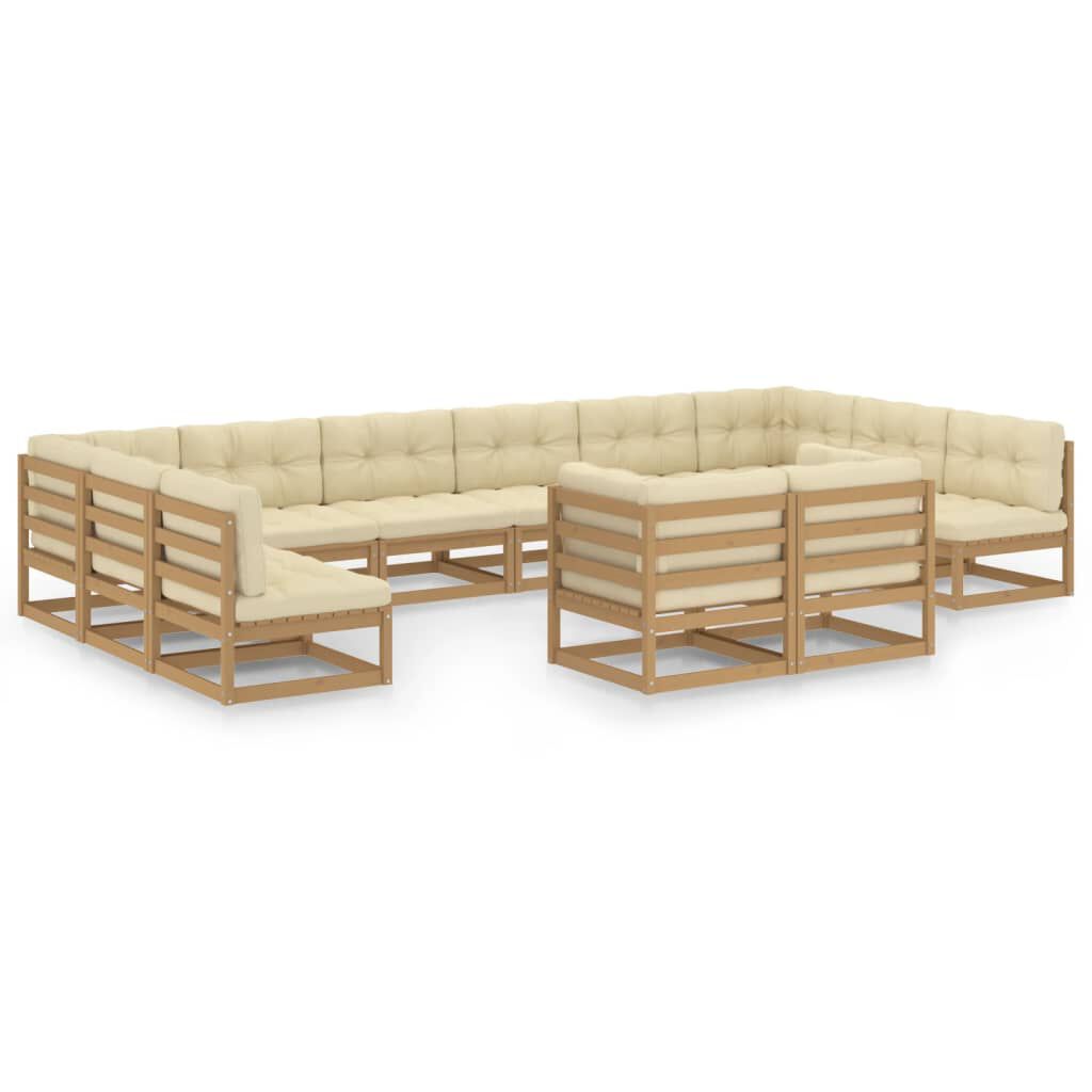vidaXL 12-delige Loungeset met kussens massief grenenhout honingbruin