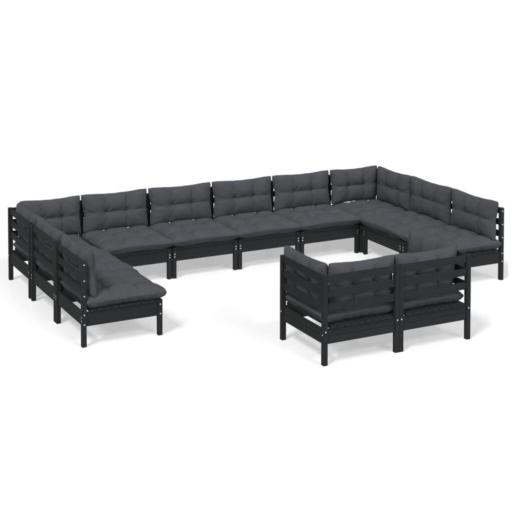 vidaXL 12-delige Loungeset met kussens massief grenenhout zwart