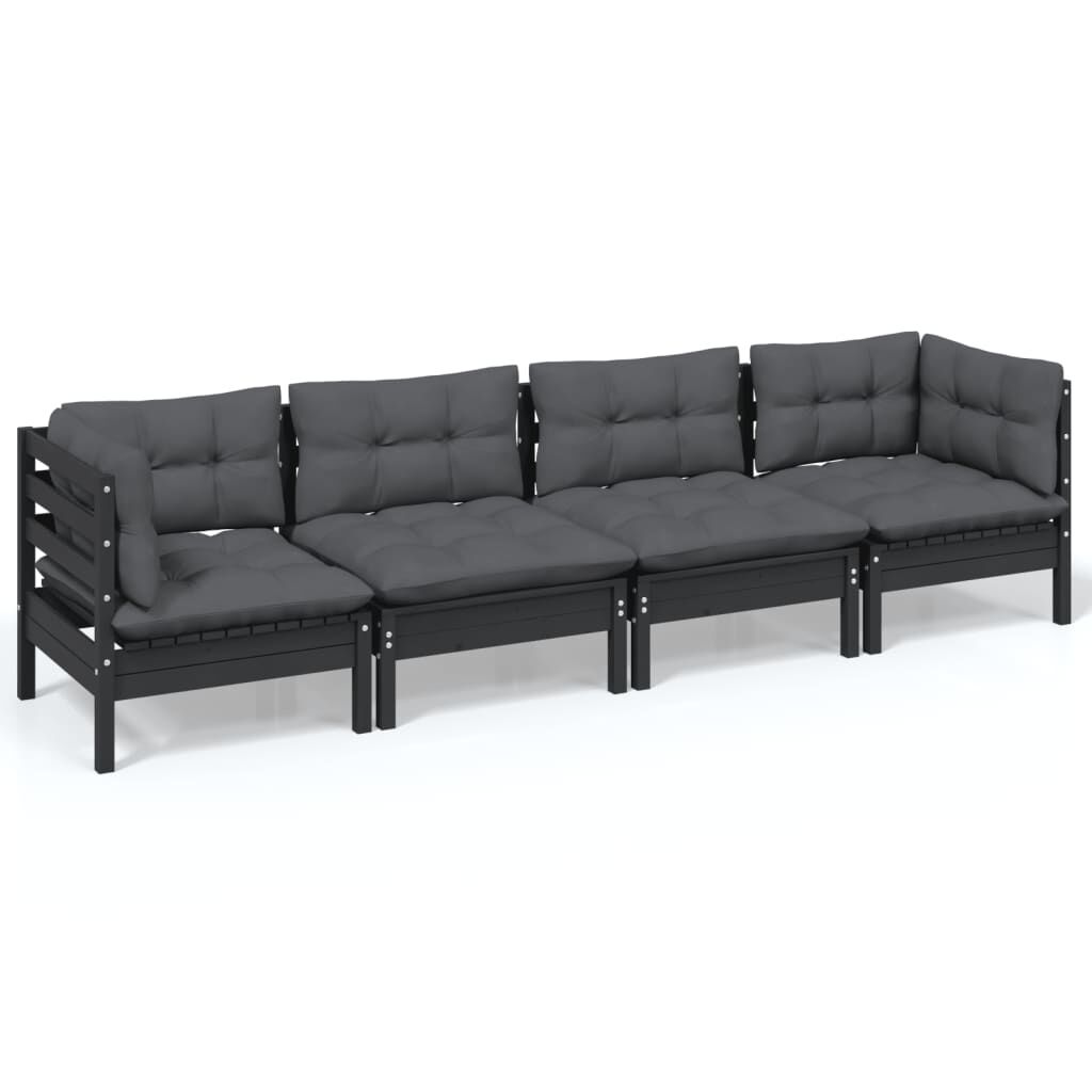 vidaXL 4-delige Loungeset met kussens massief grenenhout