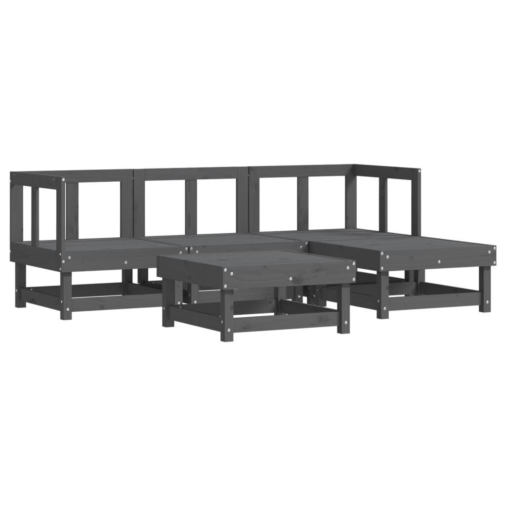 vidaXL 5-delige Loungeset massief grenenhout grijs