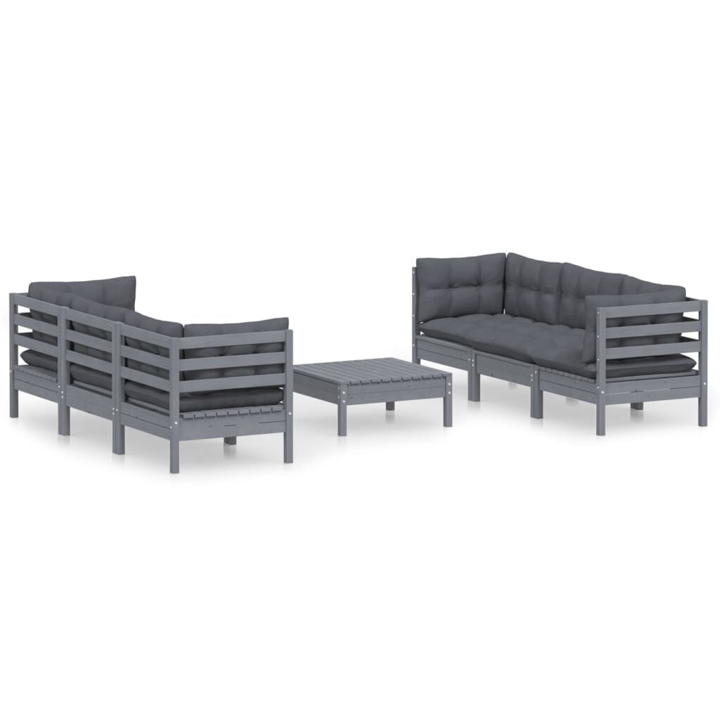 vidaXL 7-delige Loungeset met antracietkleurige kussens grenenhout