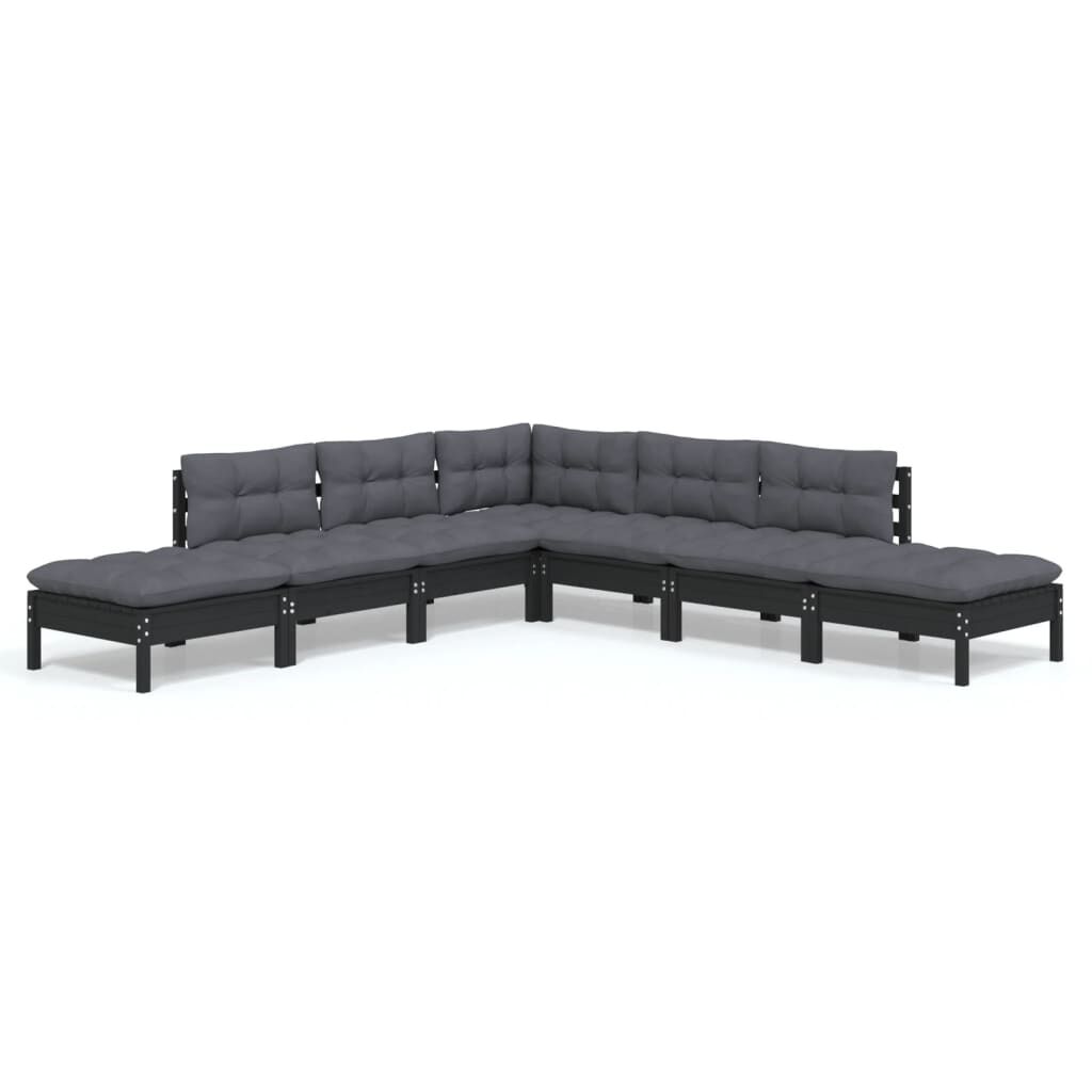 vidaXL 7-delige Loungeset met kussens grenenhout zwart