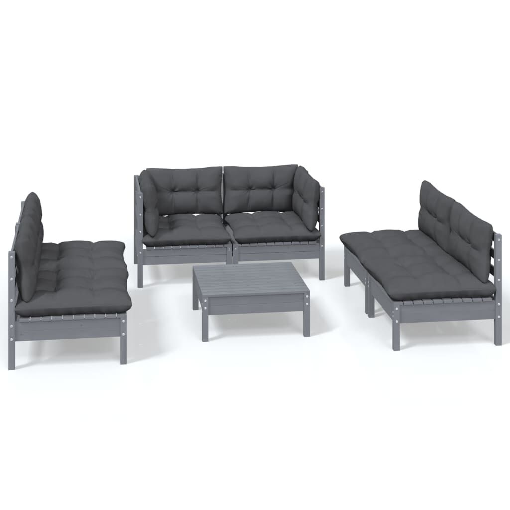 vidaXL 7-delige Loungeset met kussens massief grenenhout