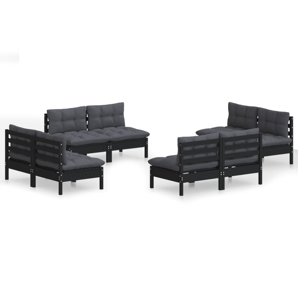 vidaXL 8-delige Loungeset met antracietkleurige kussens grenenhout