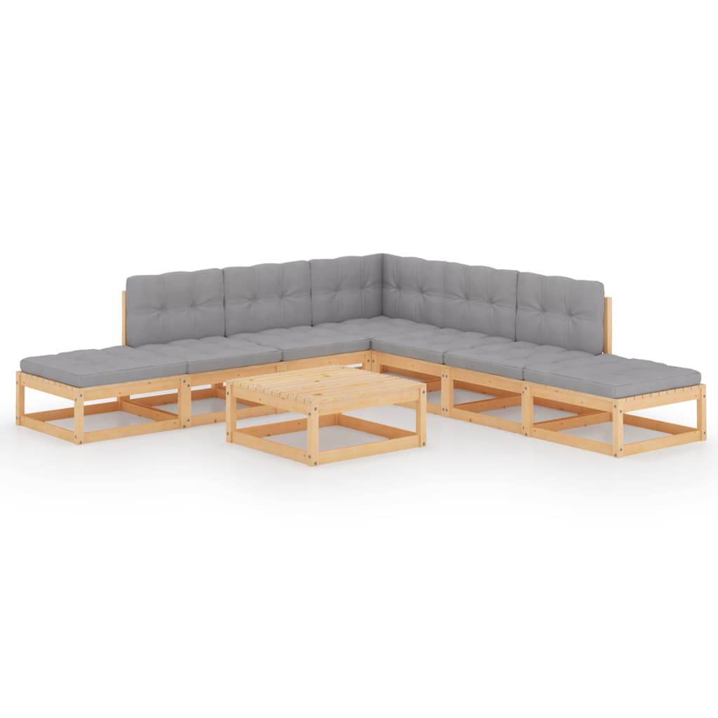 vidaXL 8-delige Loungeset met kussens massief grenenhout
