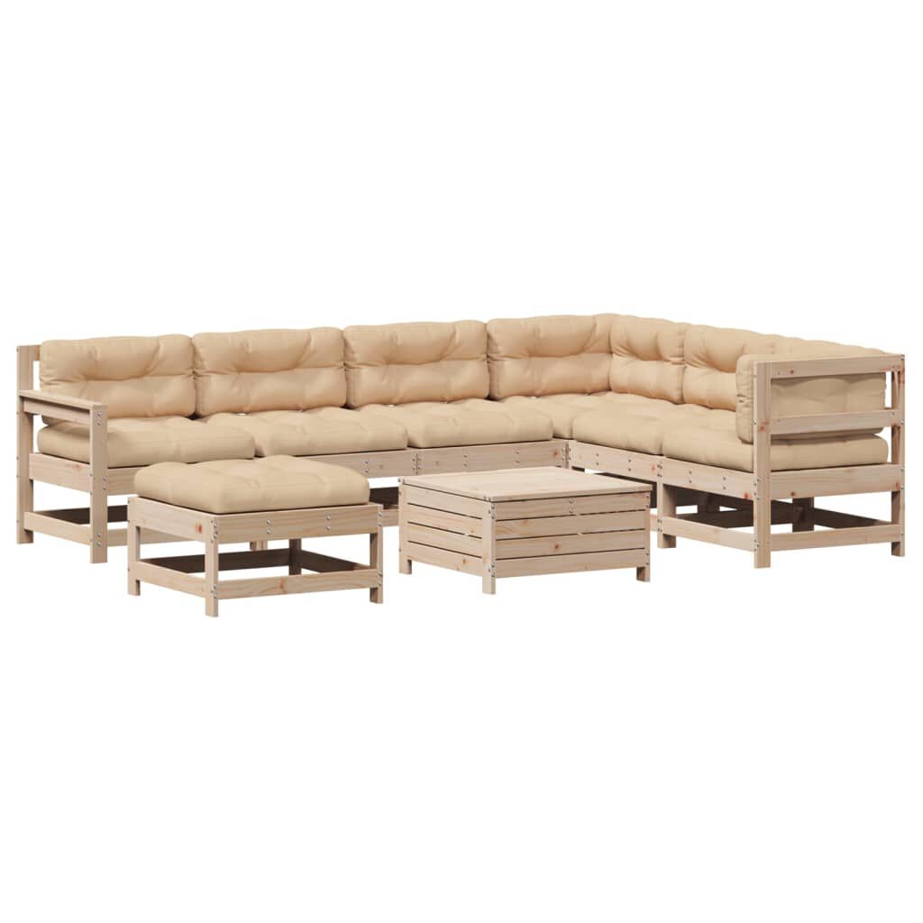 vidaXL 8-delige Loungeset met kussens massief grenenhout
