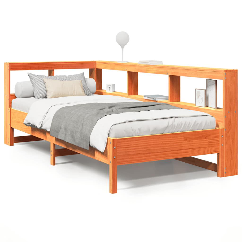 vidaXL bed met boekenkast zonder matras grenenhout wasbruin 90x200 cm