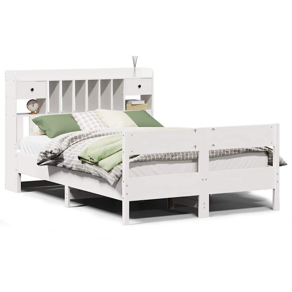 vidaXL Bed met boekenkast zonder matras grenenhout wit 140x200 cm