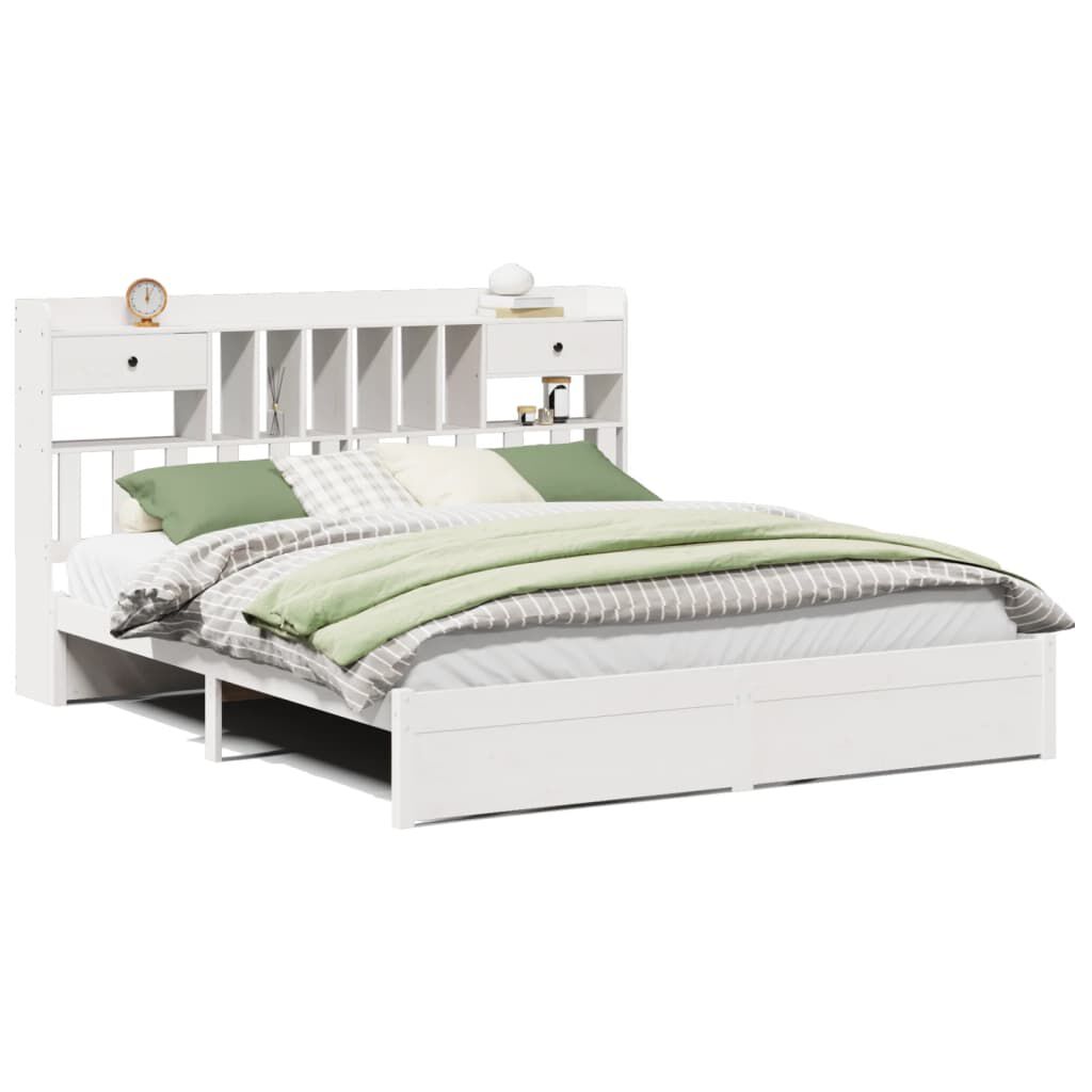 vidaXL Bed met boekenkast zonder matras grenenhout wit 180x200 cm