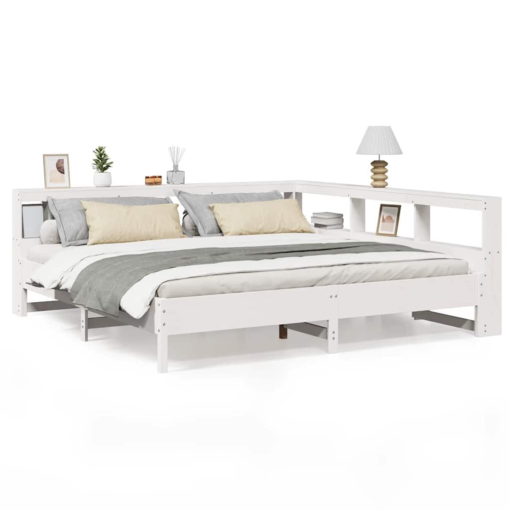 vidaXL Bed met boekenkast zonder matras grenenhout wit 180x200 cm