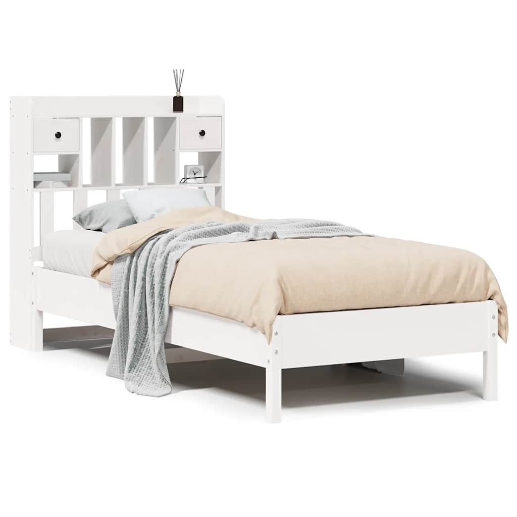 vidaXL Bed met boekenkast zonder matras grenenhout wit 75x190 cm