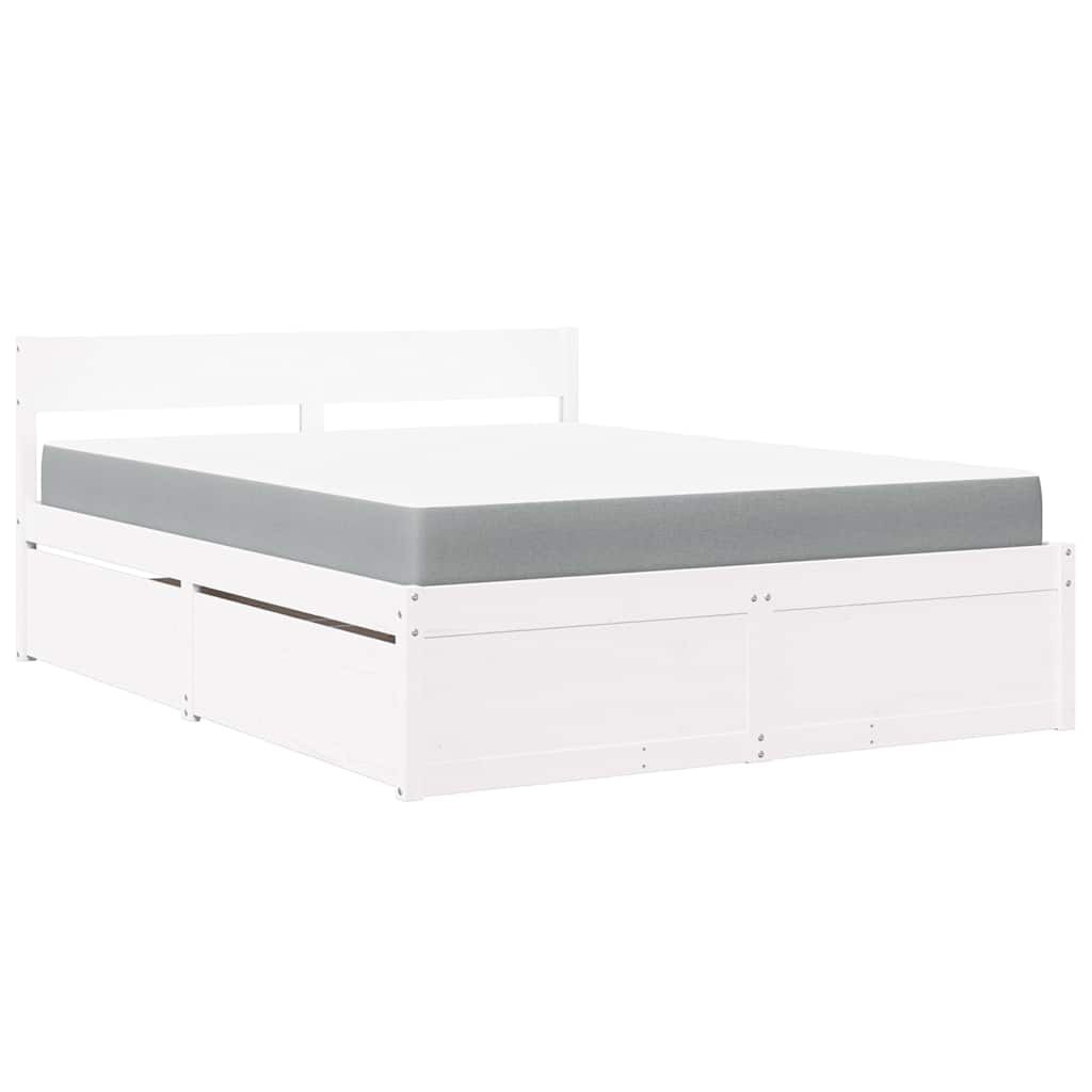 vidaXL Bed met lades en matras massief grenenhout wit 140x200 cm