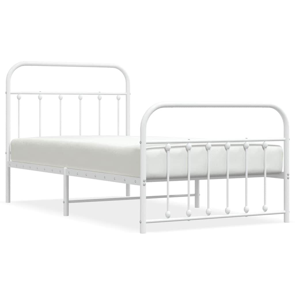vidaXL Bedframe met hoofd- en voeteneinde metaal wit 100x190 cm