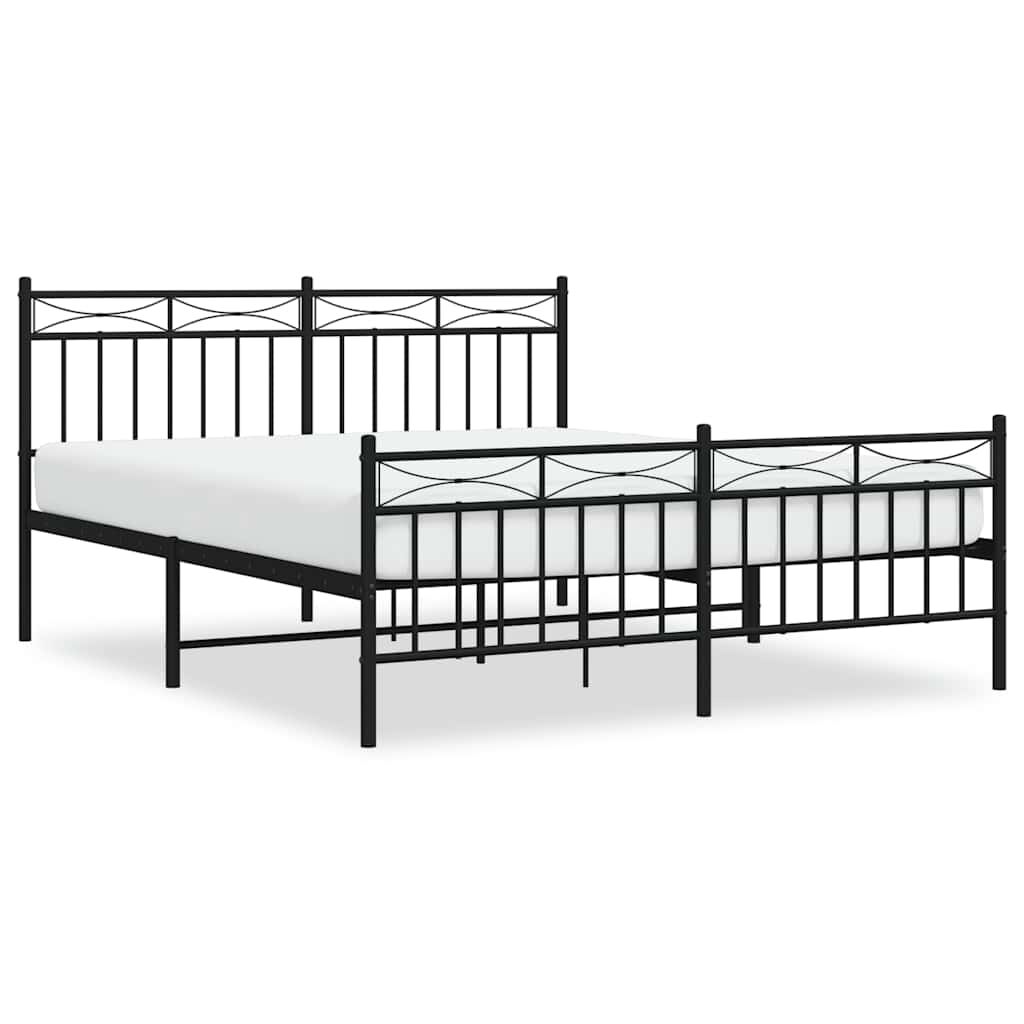 vidaXL Bedframe met hoofd- en voeteneinde metaal zwart 150x200 cm