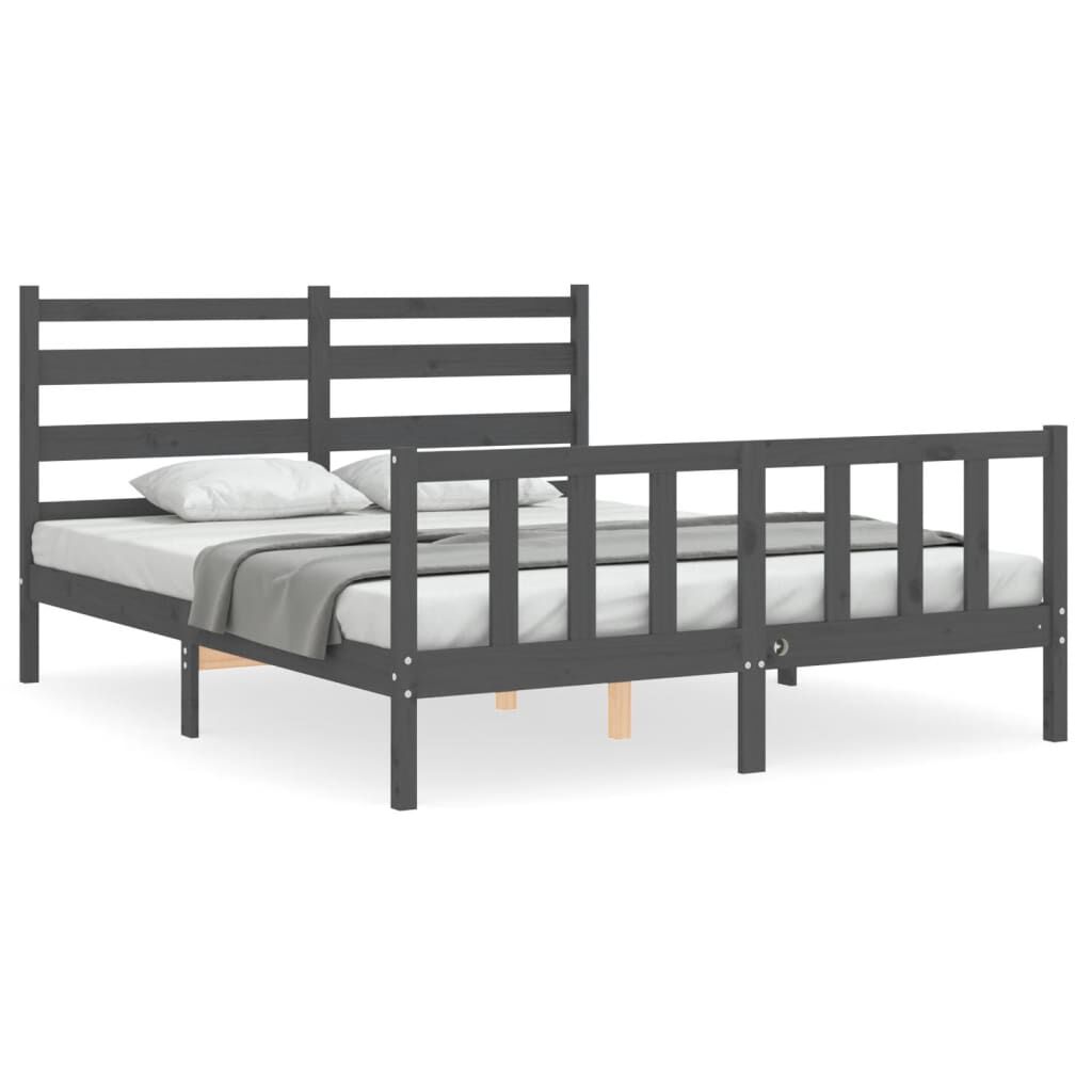 vidaXL Bedframe met hoofdbord massief hout grijs