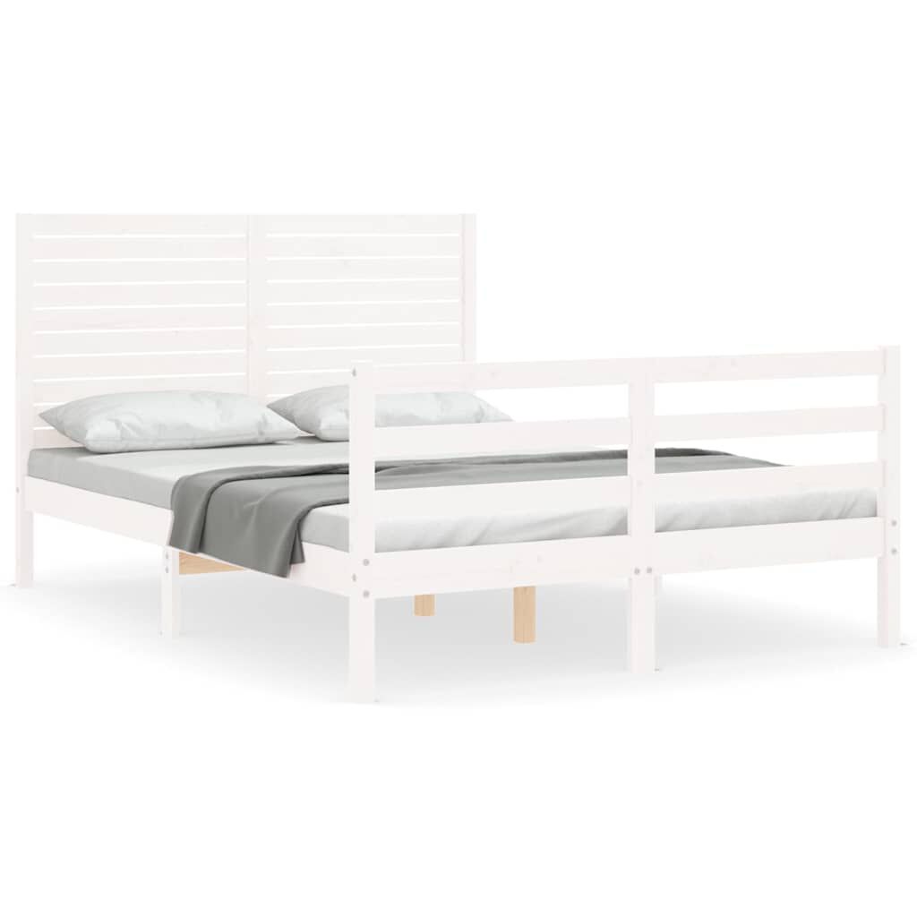 vidaXL Bedframe met hoofdbord massief hout wit 140x200 cm