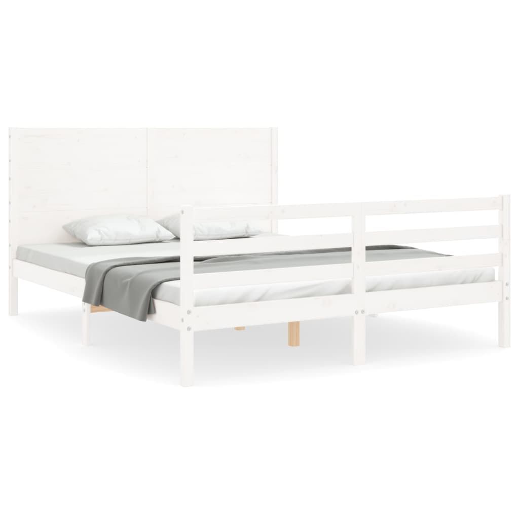 vidaXL Bedframe met hoofdbord massief hout wit 160x200 cm