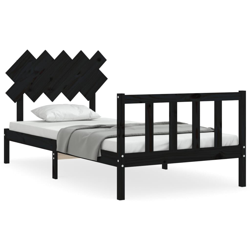 vidaXL Bedframe met hoofdbord massief hout zwart 100x200 cm
