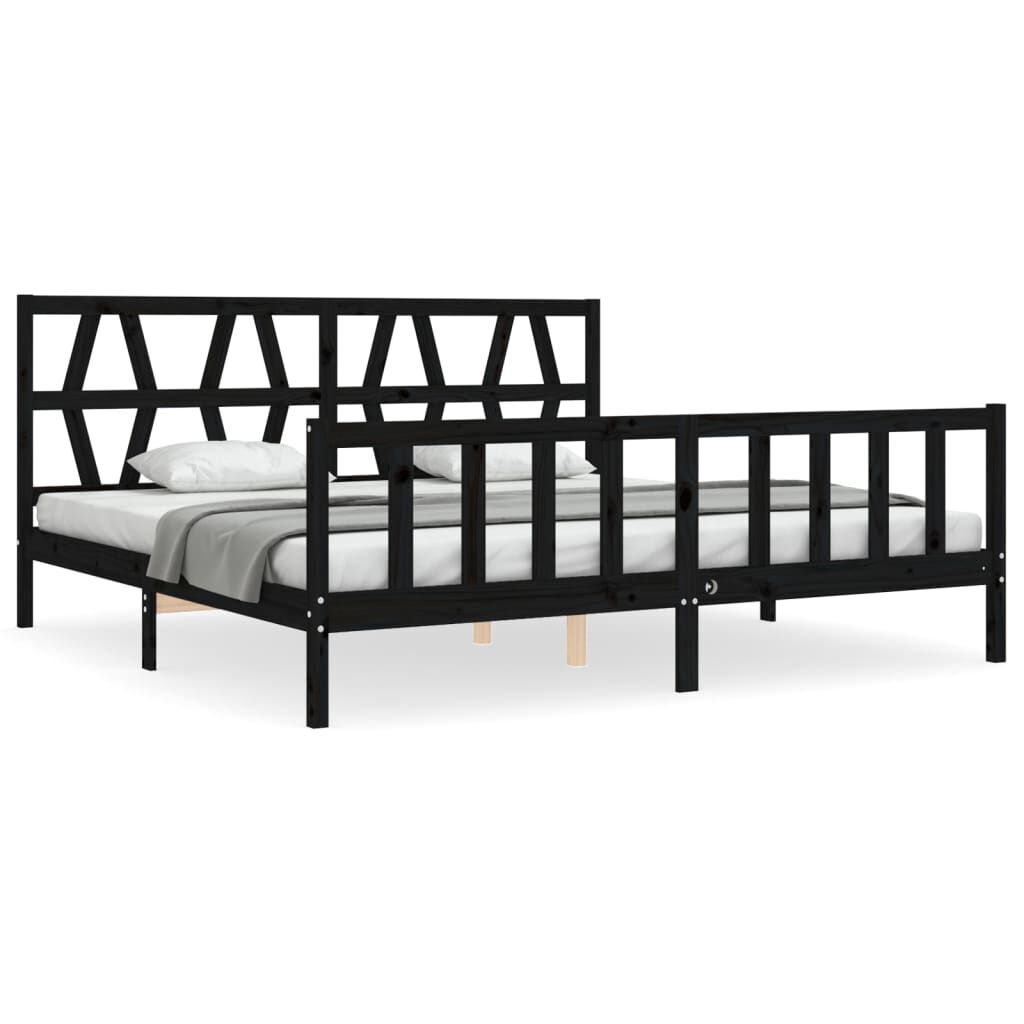 vidaXL Bedframe met hoofdbord massief hout zwart 200x200 cm
