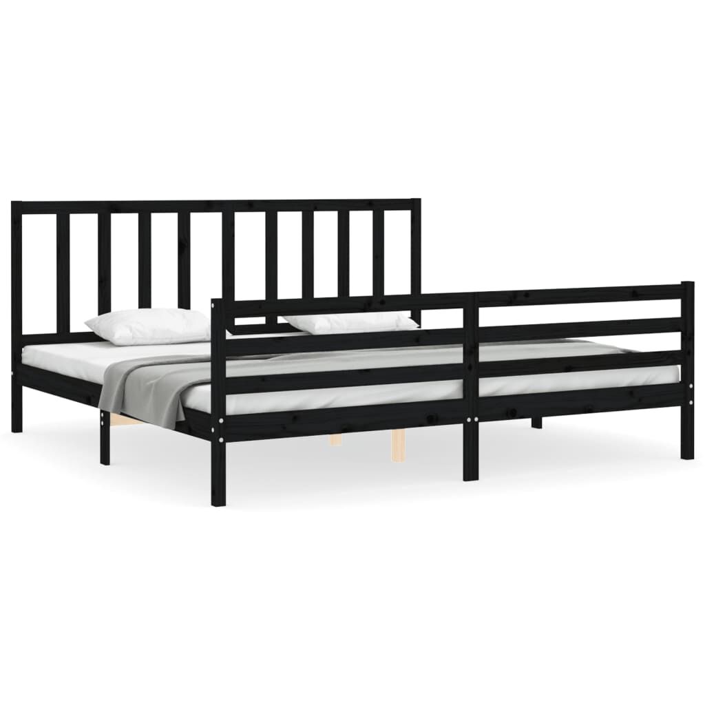 vidaXL Bedframe met hoofdbord massief hout zwart 200x200 cm