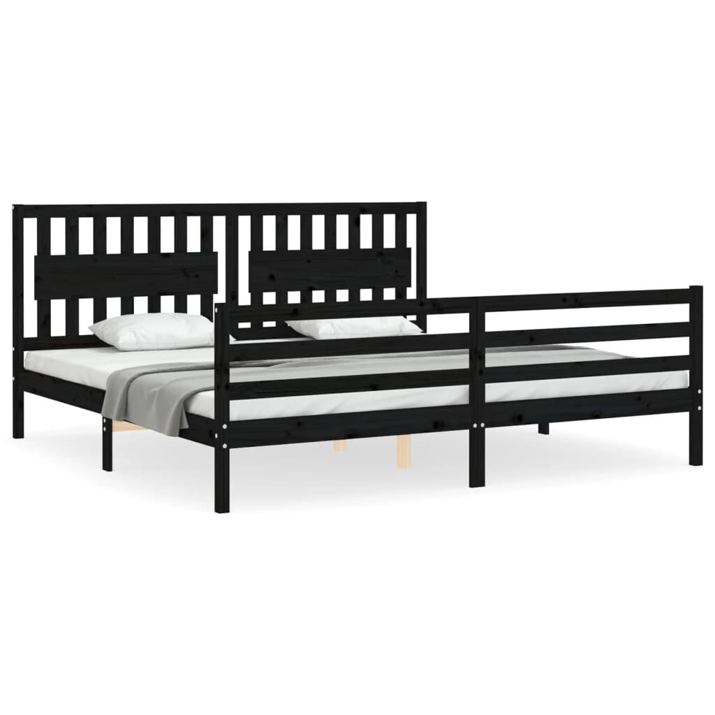 vidaXL Bedframe met hoofdbord massief hout zwart 200x200 cm