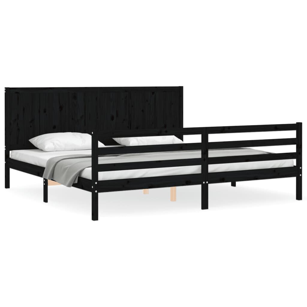 vidaXL Bedframe met hoofdbord massief hout zwart 200x200 cm