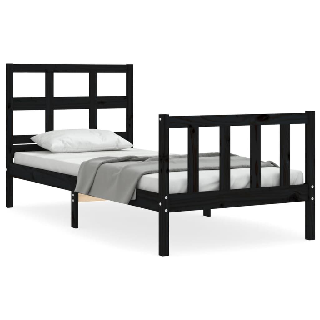 vidaXL Bedframe met hoofdbord massief hout zwart