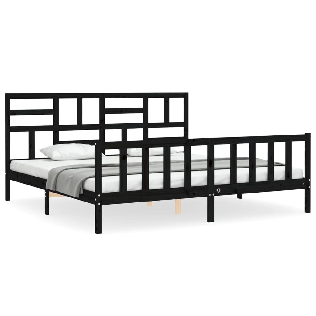 vidaXL Bedframe met hoofdbord massief hout zwart