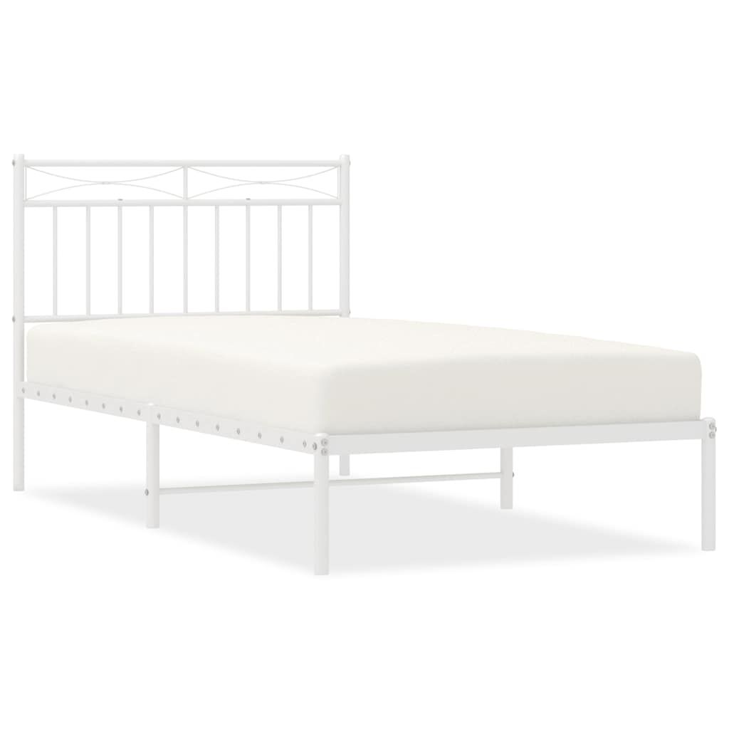 vidaXL Bedframe met hoofdbord metaal wit 100x190 cm