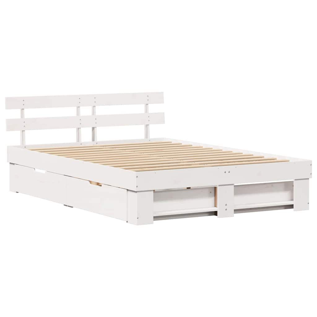 vidaXL Bedframe met hoofdeinde Wit 140 x 200 cm Massief grenenhout
