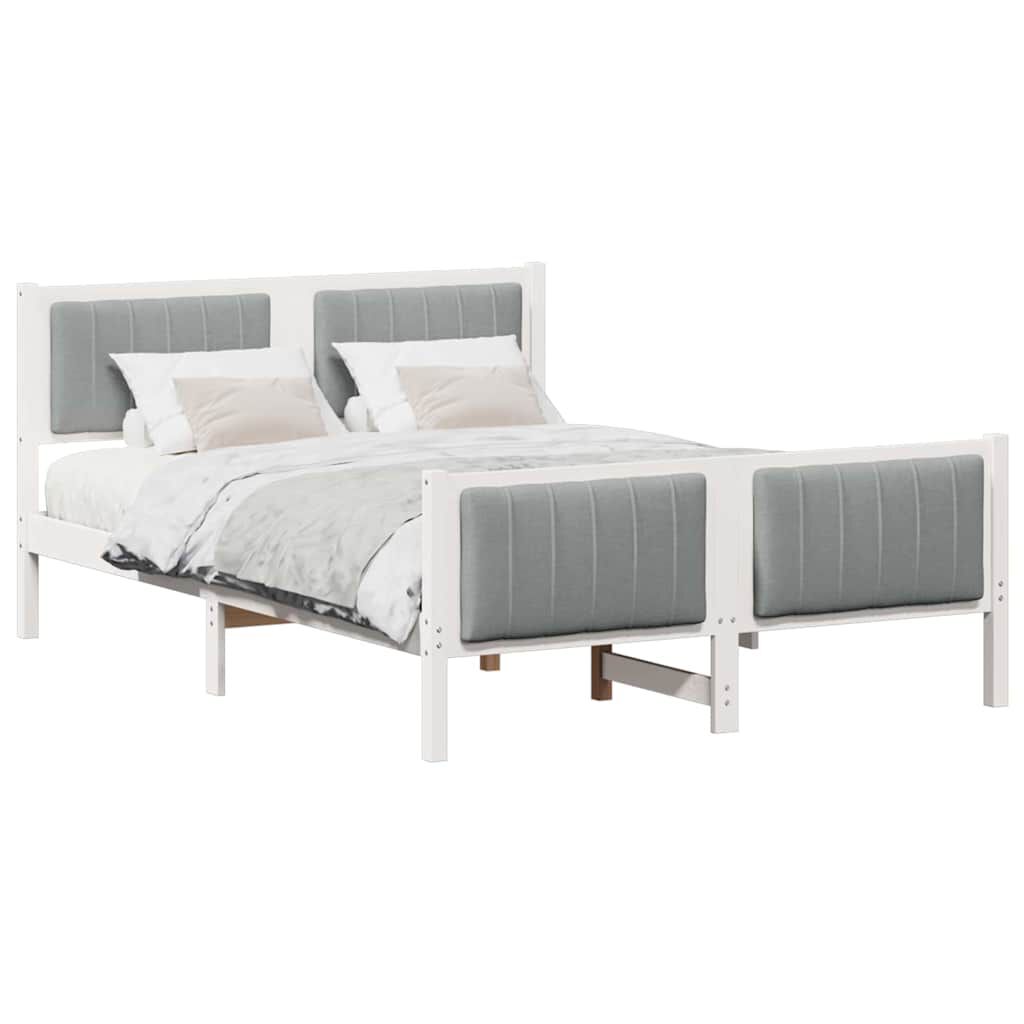vidaXL Bedframe Wit en lichtgrijs 135 x 190 cm Massief grenenhout