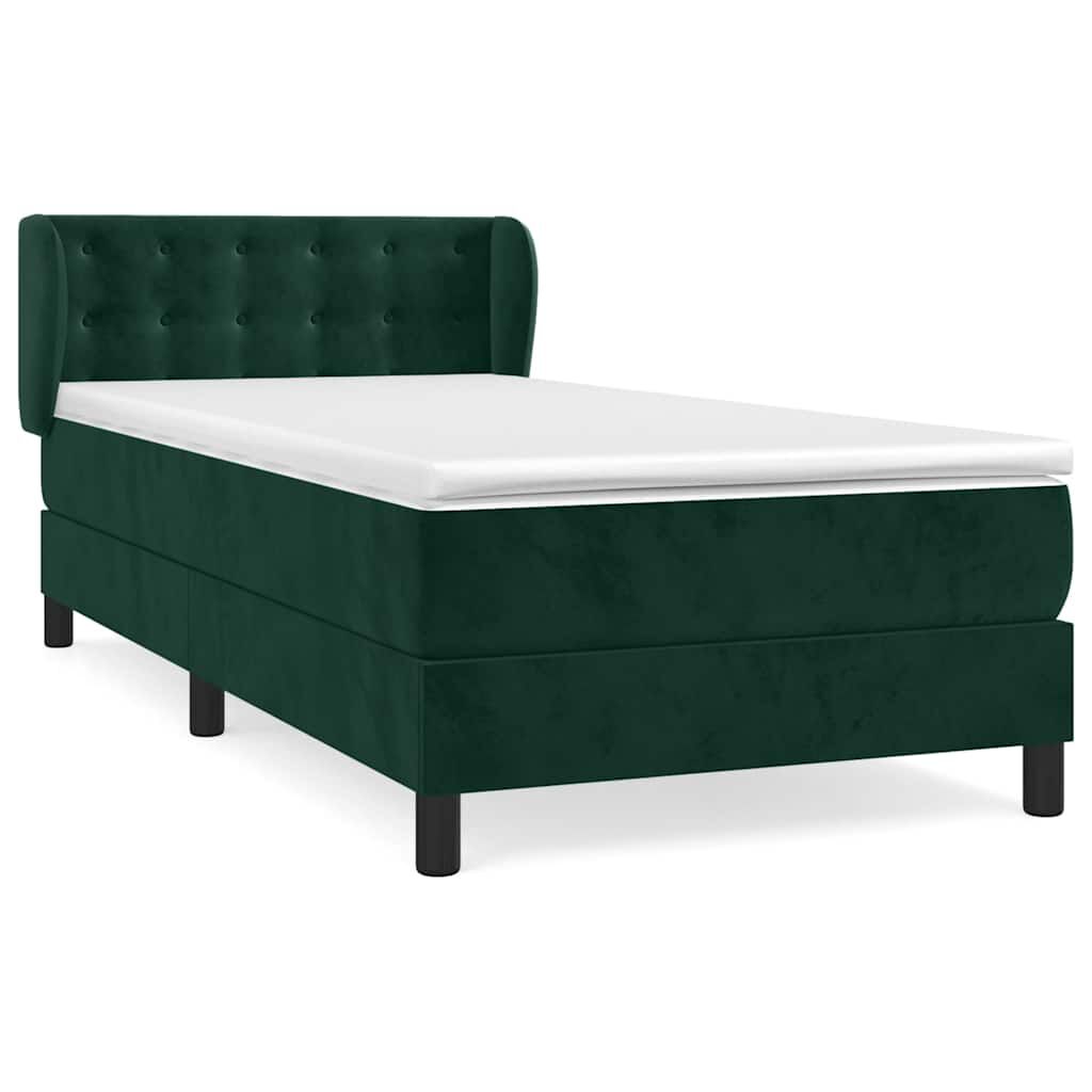 vidaXL Boxspring met matras fluweel donkergroen 90x200 cm