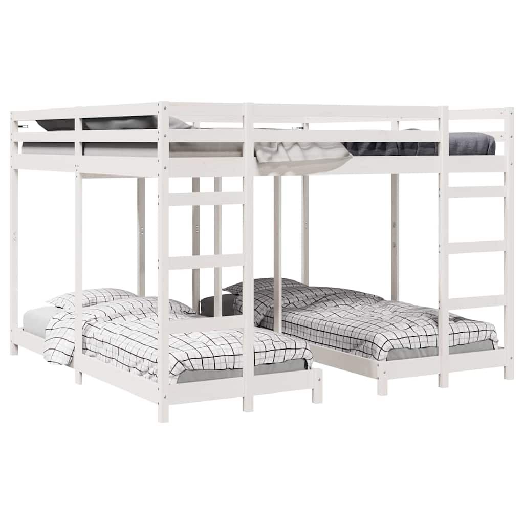 vidaXL Drie-hoog Bunk Bed Frame Wit 200 x 200 cm Massief grenenhout