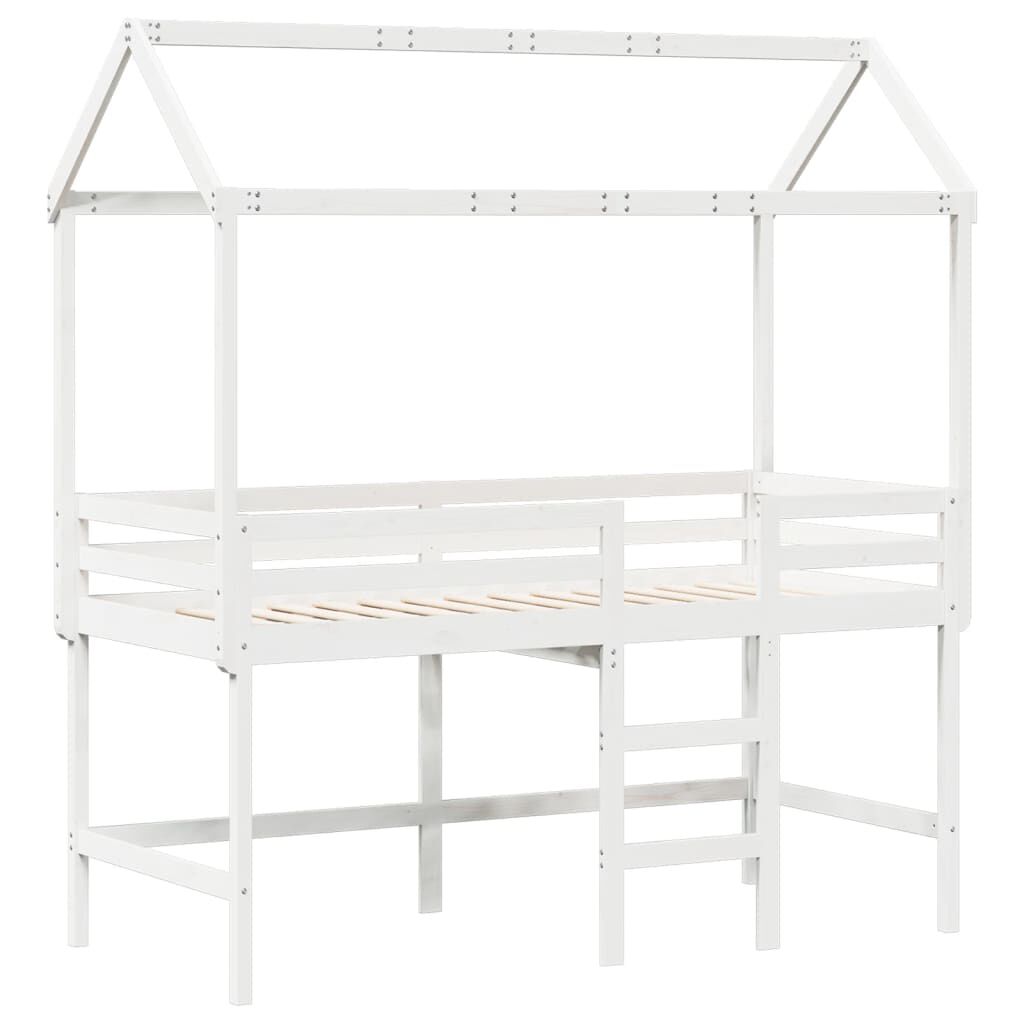 vidaXL Halfhoogslaper met ladder en bedhuis grenenhout wit 80x200 cm
