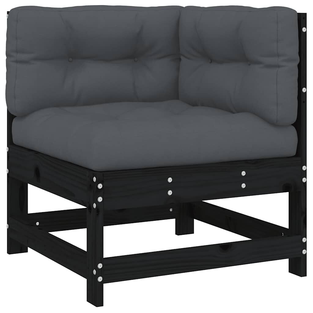 vidaXL Hoekbank met kussens massief grenenhout zwart