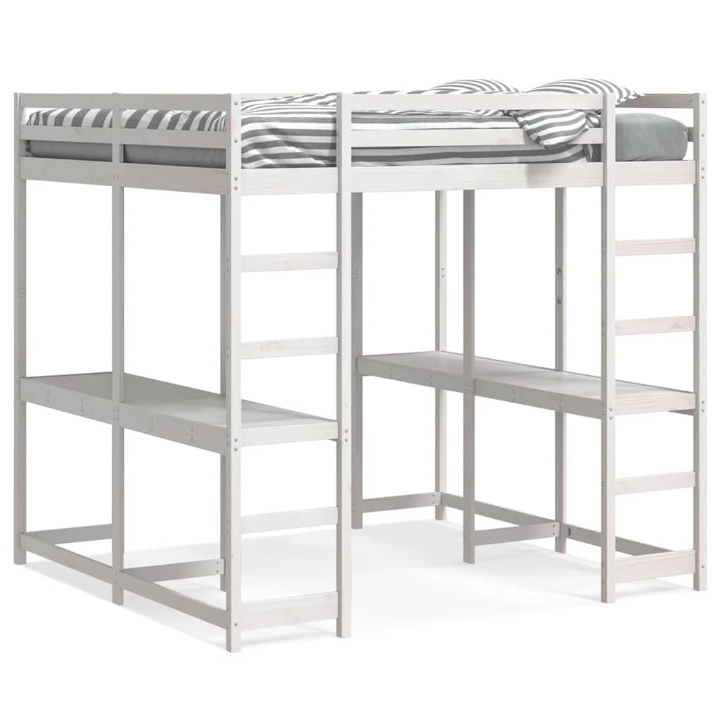 vidaXL Hoogslaper met bureau en ladder grenenhout wit 140x200 cm
