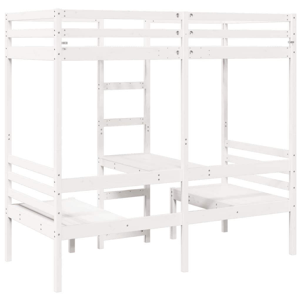 vidaXL Hoogslaper met bureau en stoelen grenenhout wit 90x200cm