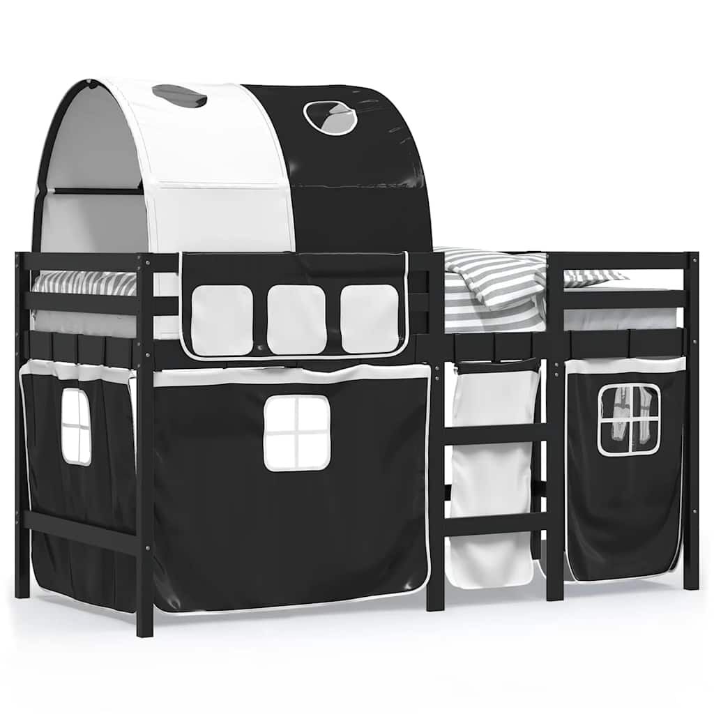 vidaXL Kinderhoogslaper met tunnel 80x200 cm grenenhout wit en zwart
