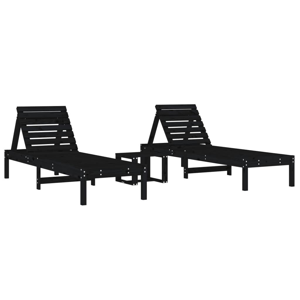 vidaXL Ligbedden 2 st met tafeltje massief grenenhout zwart