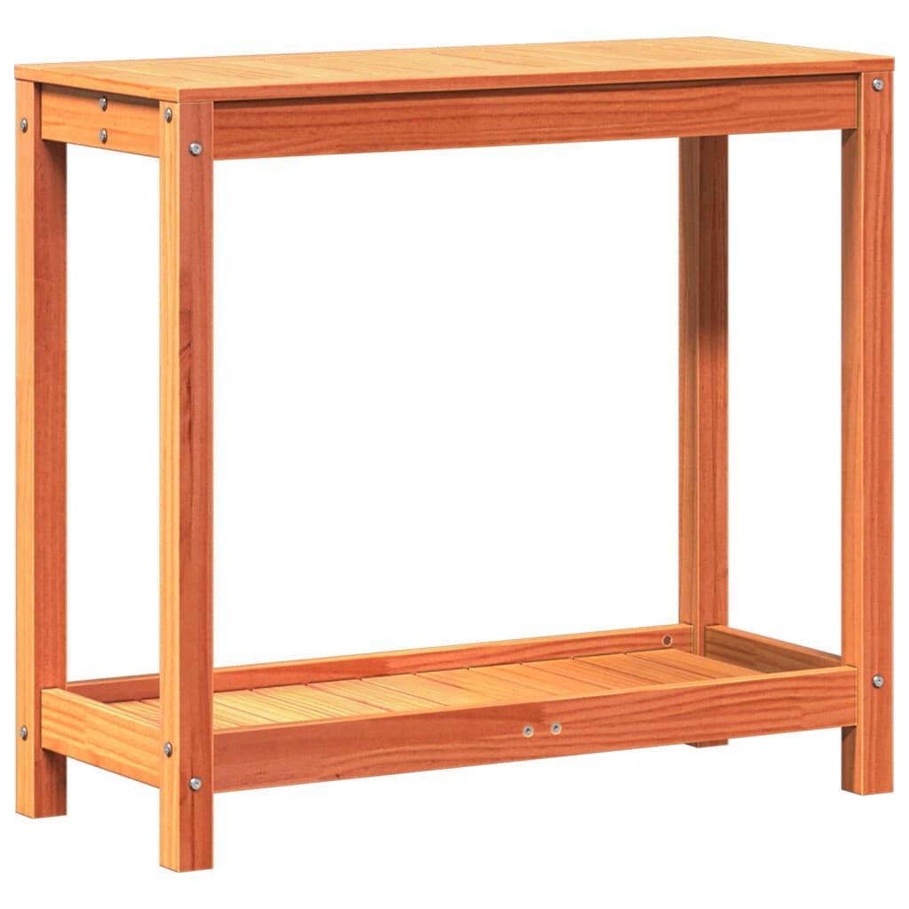 vidaXL Oppottafel met schap 82,5x35x75 cm massief grenenhout wasbruin