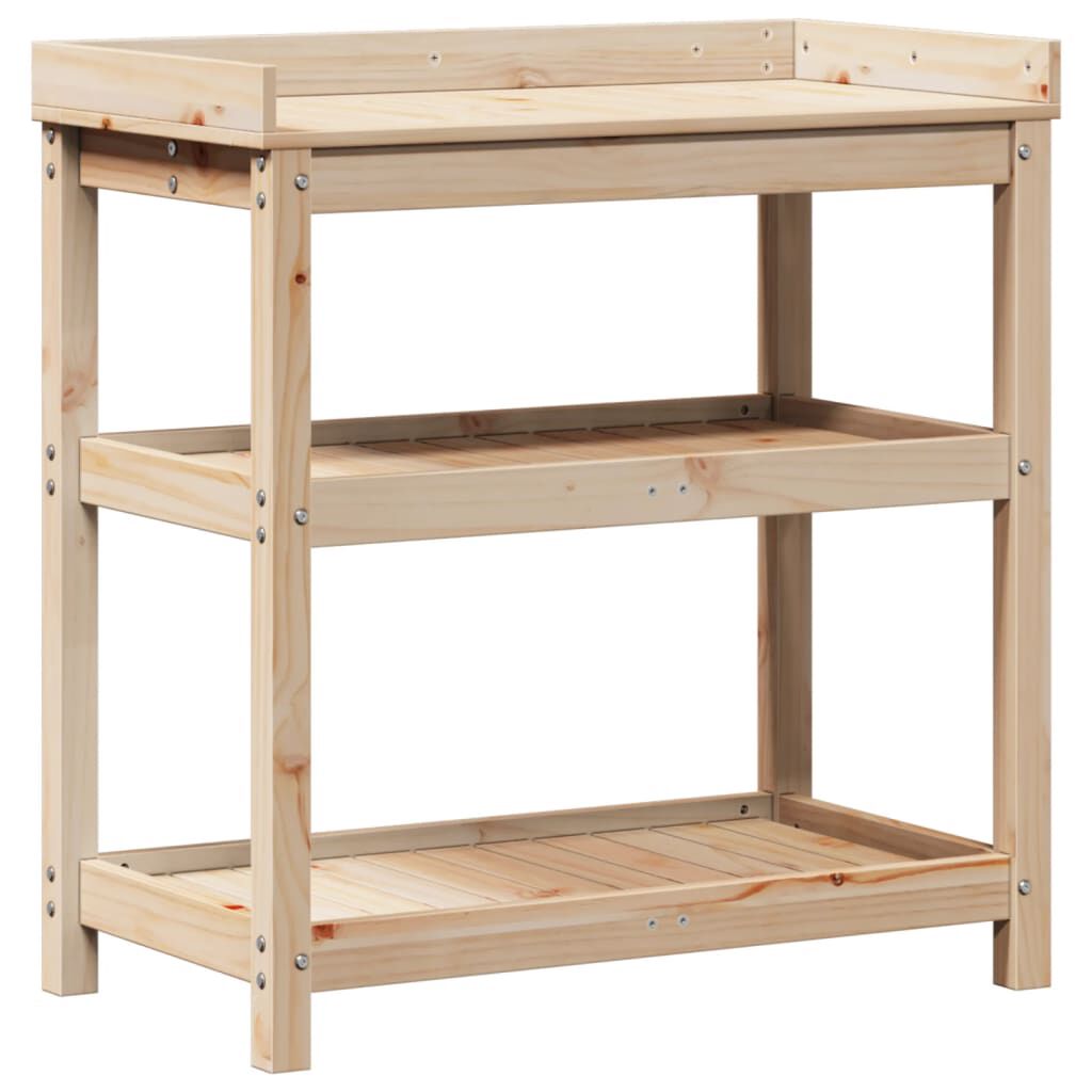 vidaXL Oppottafel met schappen 82,5x45x86,5 cm massief grenenhout