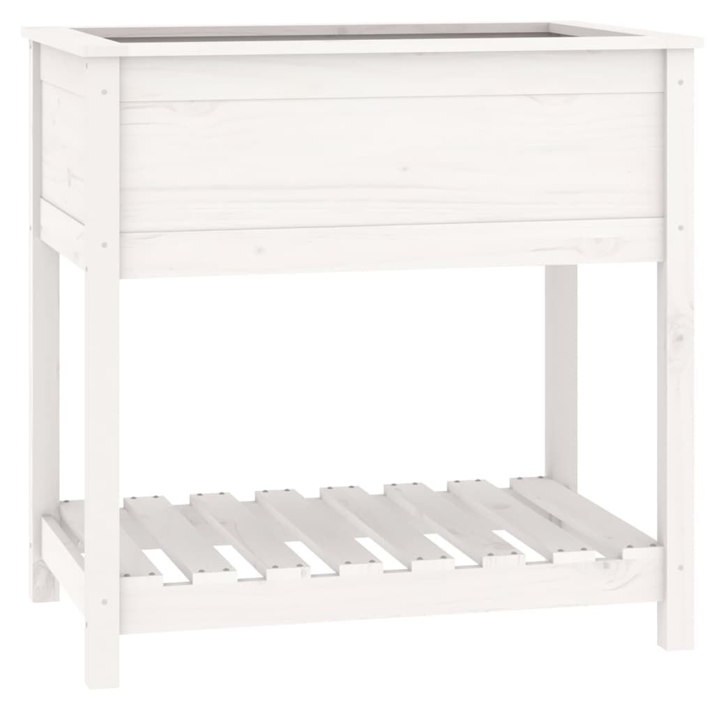 vidaXL Plantenbak met schap 82,5x54x81 cm massief grenenhout wit