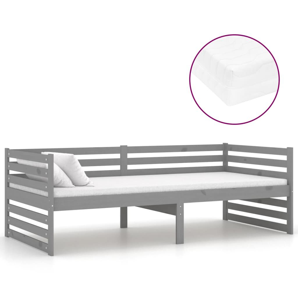 vidaXL Slaapbank met matras massief grenenhout grijs 90x200 cm