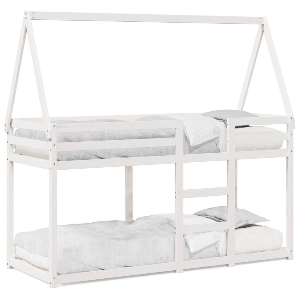 vidaXL Stapelbed met dak massief grenenhout wit 90x200 cm