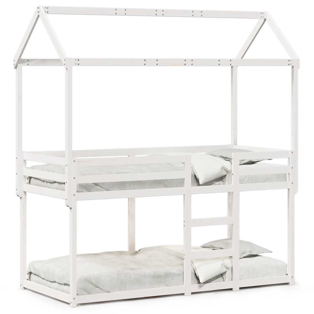 vidaXL Stapelbed met dak massief grenenhout wit 90x200 cm