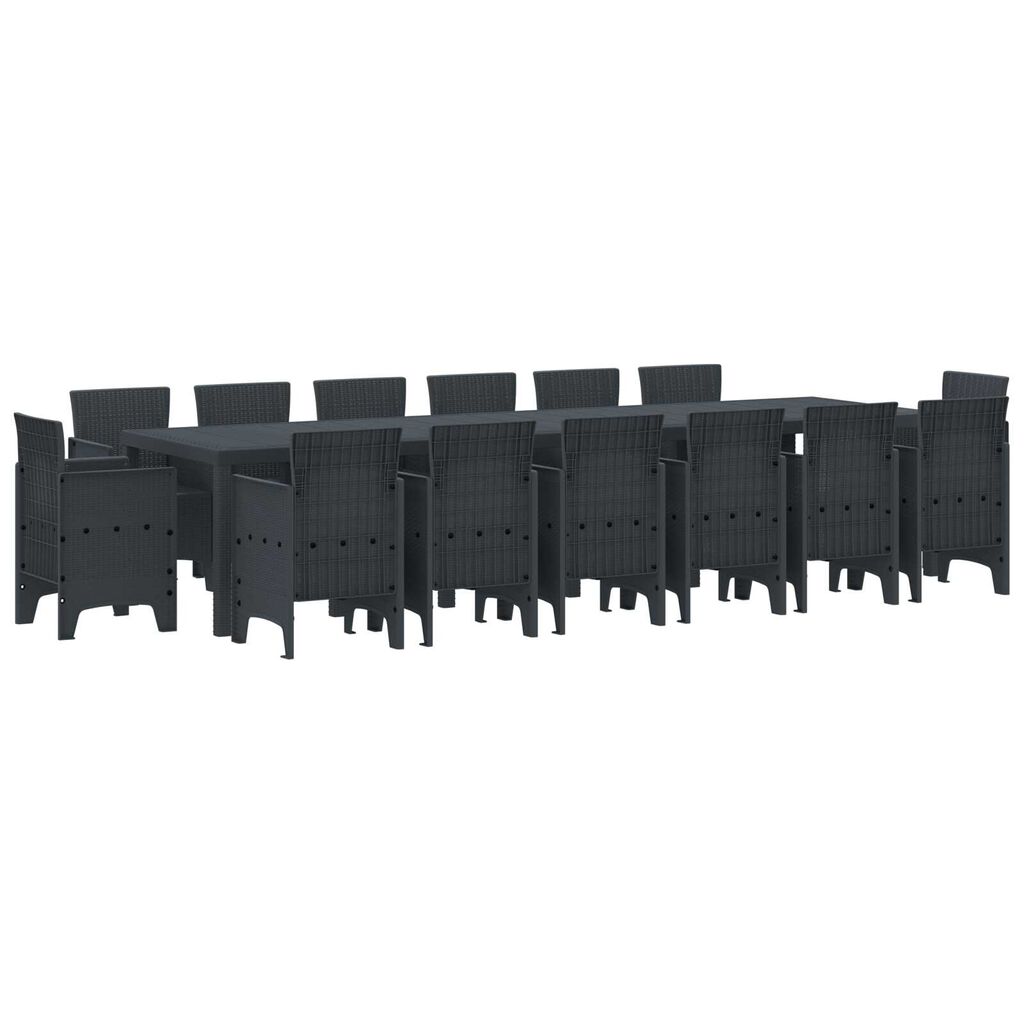 vidaXL Tuin Eetset 15 pcs Antraciet Polt riet