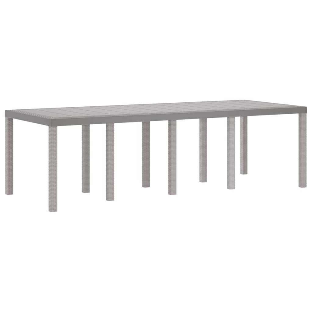 Deze moderne tuintafel is ideaal voor buitengebruik en heeft een strakke uitstraling die elke tuin of terras opfleurt. Met een combinatie van poly rattan en staal biedt de tafel een duurzame en hedendaagse look, perfect voor relaxte bijeenkomsten of diners met de familie. De minimalistische vorm laat het goed aansluiten bij verschillende buitenstijlen en is geschikt voor iedereen die houdt van elegantie in eenvoud. Stel je voor dat deze tafel het middelpunt vormt, omringd door groen of stadslichten, en een uitnodigende plek creëert voor ontspanning en vermaak.