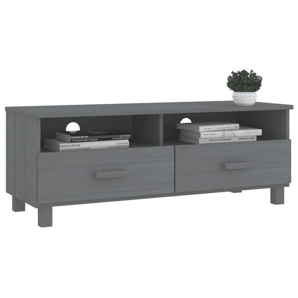 De tv-kast is gemaakt van massief grenenhout waardoor hij stabiel en stevig is. De tv-kast heeft 2 soepel schuivende lades en 2 vakken. Hij biedt dus voldoende opbergruimte om je multimedia-apparaten, boeken en andere items goed georganiseerd en binnen handbereik te houden. Het stevige blad is ideaal voor het plaatsen van decoratieve spullen, zoals fotolijstjes en planten. Dankzij de opening in de achterkant kan je kabels uit het zicht houden.