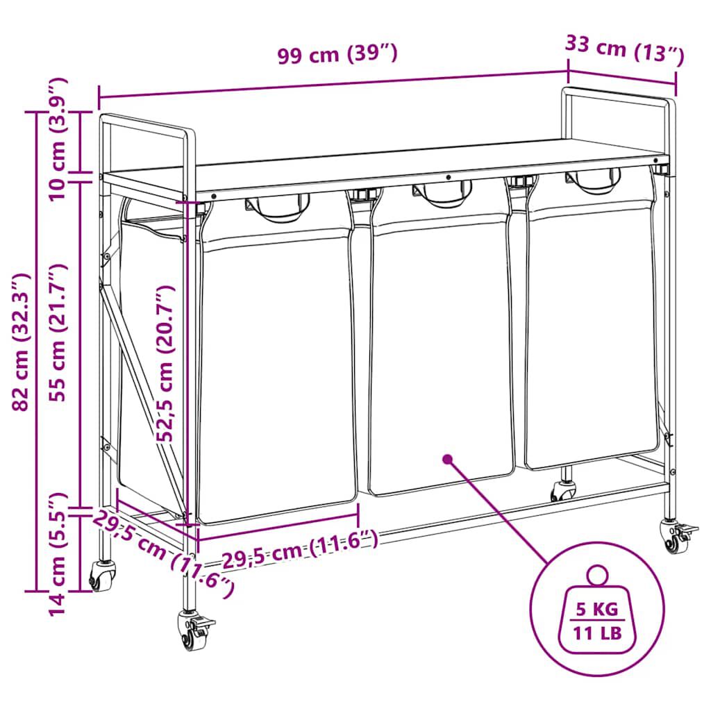 De wasmand biedt een ruime en handige opbergoplossing, met uittrekbare zakken en wielen die het organiseren en vervoeren van uw wasgoed moeiteloos maken.